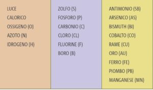 Un elenco di tali ELEMENTI ATOMICI (sostanze che chimicamente non possono essere suddivise ulteriormente) è un prerequisito per la comprensione del prossimo livello di selezione di complessità: la combinazione di questi ATOMI DI BASE (inorganici), successivamente inseriti in un contesto organico tramite processi evolutivi e selettivi prodotti dalla NATURA stessa, hanno formato le prime molecole organiche11.