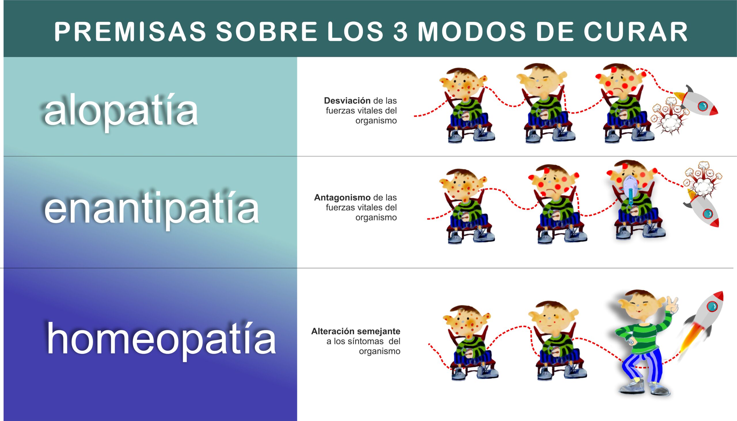 In un primo momento, il corpo vivente, permette la determinata modifica operata da agenti esterni, ma, in un secondo momento, passato l’effetto lenitivo dell’agente, reagisce con una risposta antagonista, creando un’azione completamente opposta. Pertanto, accade che una sostanza medicamentosa contro la malattia, può causare la cessazione delle manifestazioni per un breve periodo, ma inevitabilmente, quasi immediatamente, l’organismo dovrà lasciare il posto a reazioni antagonistiche. Dette reazioni provocheranno uno stato contrario alla guarigione, vale a dire un aumento del disagio, delle alterazioni o della sofferenza dei malati e quindi un’aggiunta alla sofferenza iniziale con cui il paziente è venuto alla consultazione con la ben nota conseguenza di dover aumentare continuamente la dose per silenziare il lamento dell’organismo malato talvolta causando la morte (malattie e morti iatrogeniche).